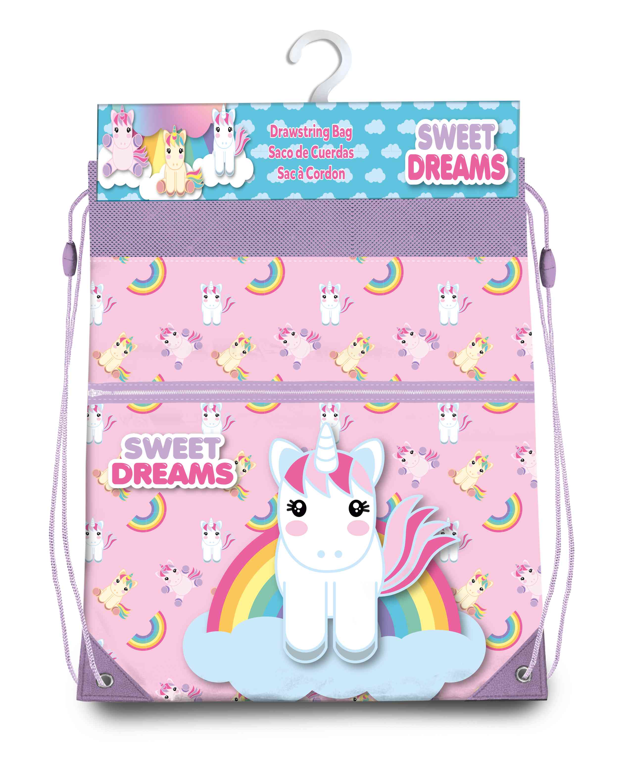 Worek szkolny z motywem Sweet Dreams idealny dla dzieci gdy potrzebują do szkoły, przedszkola zabrać ze sobą obuwie i strój na gimnastykę.