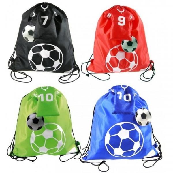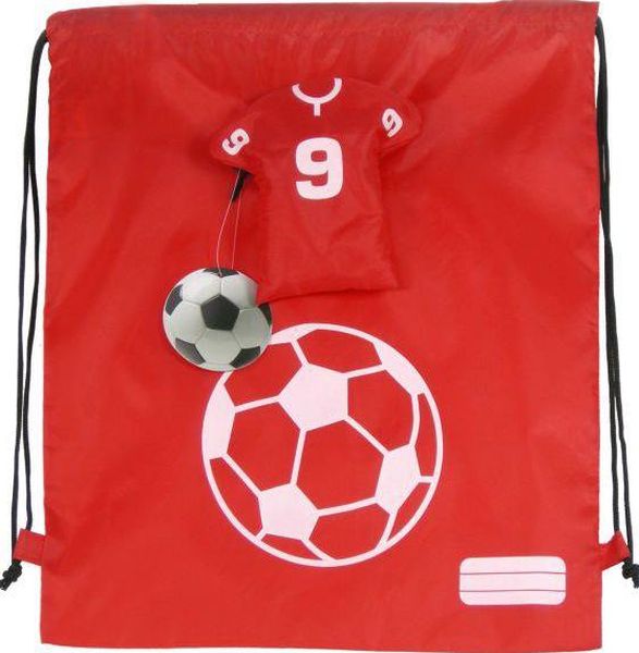 Worek na obuwie w etui w kształcie kuszulki piłkarza.