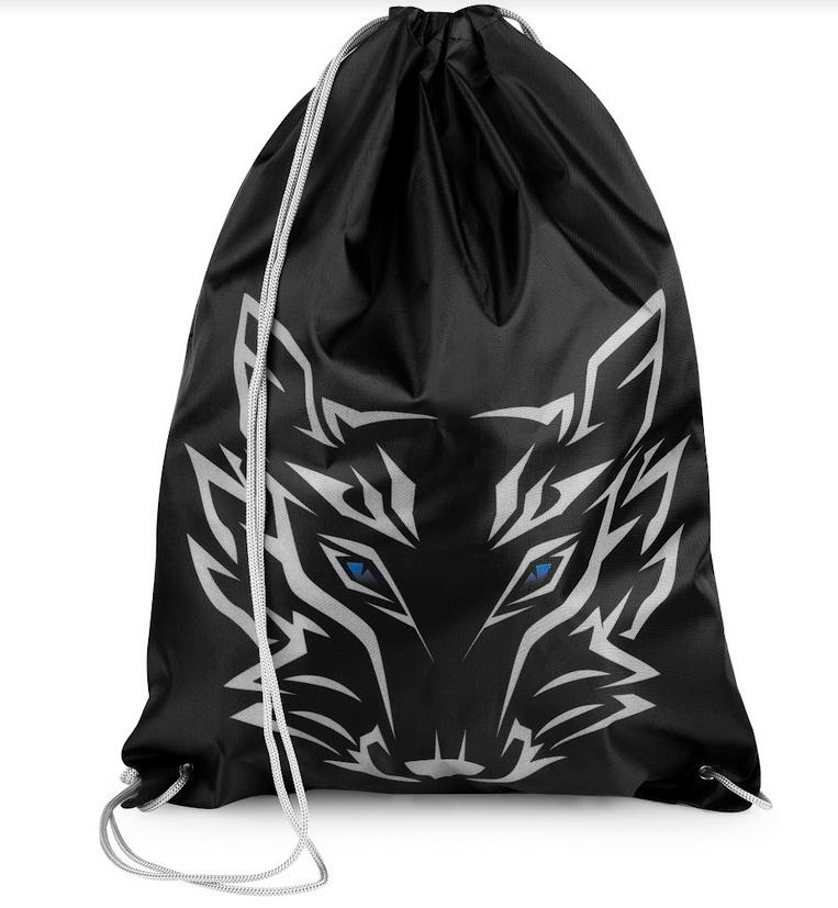 Wytrzymały worek na buty z poliestru Wilk; o wymiarach 37 cmx 24 cm.