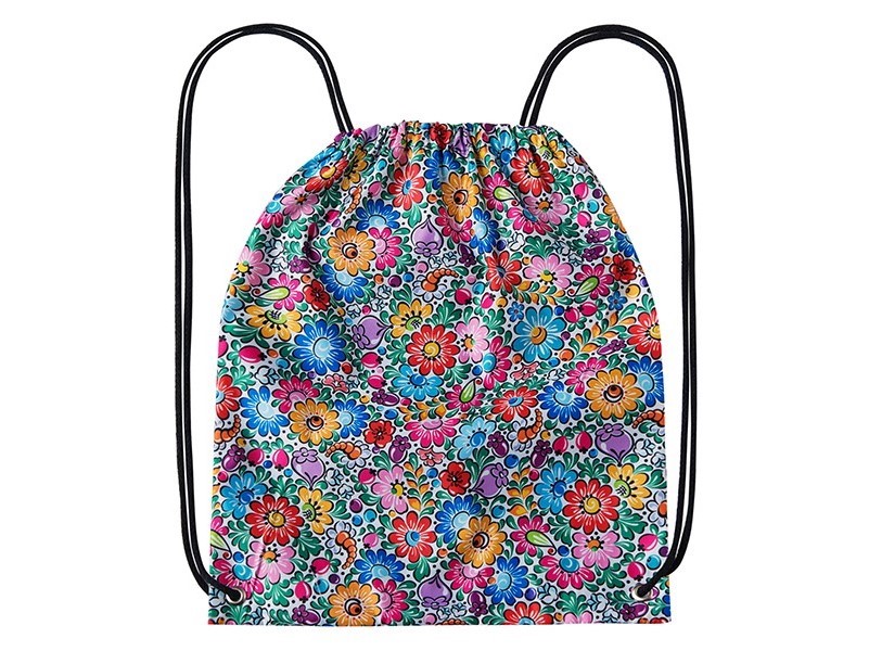 Worek, plecak FOLK - wzór opolski: wielokolorowy z kwiecistym motywem,