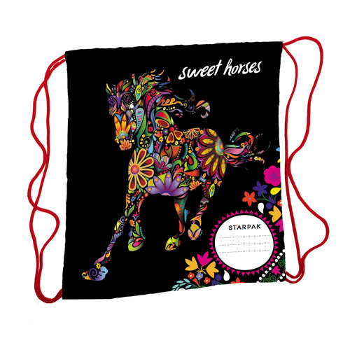 Praktyczny i wygodny worek nie tylko na buty. Ozdobiony wizerunkiem Konia stworzonego z kwiatów. Zapoznaj się również z innymi produktami Starpak z serii Horses! Komora zaopatrzona w ?wywietrzniki?. System sznurków umożliwia wygodne noszenie worka w dłoni, na ramieniu, a także jako plecak. Wytrzymały i odporny na zabrudzenia materiał. Wykonany z trwałego materiału. Worek jest wyrobem tekstylnym. Przeznaczony dla dzieci w wieku: 3+. Wymiary produktu(wys.x szer.) [cm] 38,5x33.