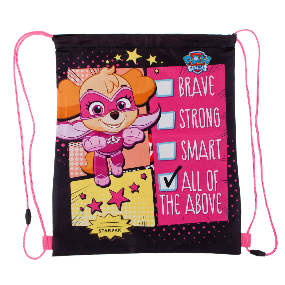 Worek na ramię Psi Patrol to propozycja firmy STARPAK. Worek nie musi służyć tylko do noszenia kapci czy butów, można go także wykorzystać jako plecak na wycieczkę czy rower. Worek dzięki długim sznurkom, daje wiele możliwości jego wykorzystania. Zapoznaj się również z innymi produktami Starpak! Wielofunkcyjny i bardzo wytrzymały worek. Z praktycznym systemem sznurków, umożliwiającym wygodne otwieranie i zamykanie worka. Idealnie sprawdzi się nie tylko do szkoły, ale również na wycieczki. Wykonany z trwałego materiału. Worek jest wyrobem tekstylnym. Przeznaczony dla dzieci w wieku: 3+. Wymiary produktu (wys.x szer.) [cm]: 39x33.