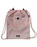 Praktyczny worek z kieszonką na zamek to idealne rozwiązanie na zajęcia sportowe, wycieczki czy codzienne aktywności! Wyposażony w zewnętrzną kieszonkę na suwak na drobiazgi oraz wszywkę do podpisania, co ułatwia identyfikację. Kompaktowe wymiary (32x42 cm) zapewniają wygodę noszenia, a uroczy wzór kotka z kolekcji BEBE Friends, ozdobiony wystającymi uszkami, nadają mu wyjątkowego charakteru.
