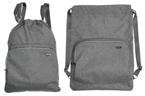 WORKO-PLECAK - SZARY/BASIC, wymiary 35x48,5cm, wewnątrz dodatkowa kieszonka na zamek, regulowane szelki z wyszytą aplikacją, na plecach dodatkowa kieszeń zamykana na zamek.