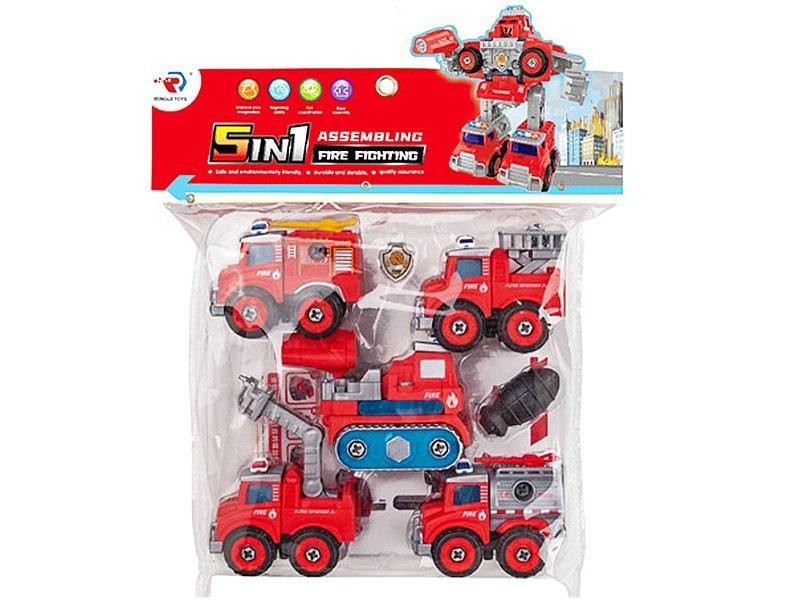 zestaw 5 pojazdów straży pożarnej do skręcania, ze śrubokrętem 34x28cm, PVC