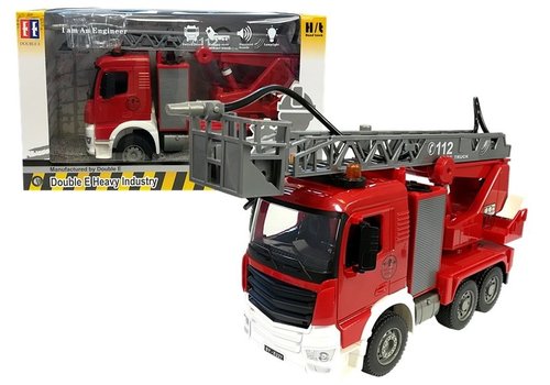 Pojazdy służb porządkowych to świetna zabawa, zarówno dla chłopców jak i dziewczynek. Ambulanse, radiowozy, a także wozy strażackie, to pojazdy, które każdym swoim przejazdem budzą niemałe emocje. Dzięki Wozowi Strażackiemu produkcji firmy Double E możecie przenieść pełną działania akcję do swojego salonu! Duży, czerwony wóz strażacki pozwala dziecku poczuć się jak prawdziwy strażak. Posiada regulowaną drabinę, którą można poruszać w górę i w dół, a także wydłużać ją i skracać. Na końcu drabiny znajduje się platforma z końcówką węża strażackiego, z której leci woda! Jest to możliwe dzięki zbiornikowi umieszczonemu na przyczepie pojazdu. Po odczepieniu zatyczki i napełnieniu zbiorniczka wodą Twój mały strażak jest gotowy do akcji! Naciskając przycisk znajdujący się na górze zbiorniczka powietrze zostaje sprzężone, dzięki czemu z węża zaczyna tryskać woda! Wóz wyposażony jest także w oświetlenie, do którego obsługi potrzebna jest płaska bateria CR2025 (nie jest dołączona do zestawu). Wymiary pojazdu w opakowaniu: 46 cm x 27 cm x 19 cm. Waga z opakowaniem: 1,5 kg.