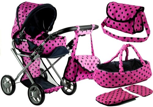 Wózek dla lalek Alice głęboki, nosidło, torba, pościel