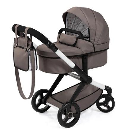 Nowoczesny wózek dla lalek combi XEO ma elegancki wygląd i wiele różnych funkcji. Jest odpowiedni dla lalek o wielkości do 46 cm. Dzięki regulowanej rączce wózek ten można łatwo dostosować do wzrostu dziecka; możliwe jest również umieszczenie walizki w obu kierunkach jazdy. Ponadto ma odwracalny uchwyt, dzięki czemu można go łatwo przesuwać w obie strony. Dzięki dołączonym zatrzaskom i możliwej zmianie kata przenośnego łóżeczka wózek dla lalek można w kilka sekund zamienić na wózek spacerowy. Pokrowiec ma podwójne przeznaczenie - jeśli lalka siedzi lub leży w wózku chroni ja zarówno przed słońcem jak i wiatrem. Obracane przednie kola gwarantują stabilne pokonywanie zakrętów.
