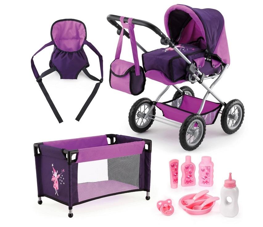 Combi Grande to nowoczesny uniwersalny wózek dla lalek ze zdejmowana gondola. Jeśli wyjmiesz gondole, możesz zmienić wózek dla lalki na wózek dziecięcy w ciągu kilku sekund. Nadaje się do lalek o długości około 38 - 46 cm. Dzięki regulowanemu uchwytowi wózek nadaje się nawet dla małych dziewczynek. Aby ułatwić transport, wózek można w łatwy sposób złożyć. Koszyk i torba na ramie są wygodne dla wszystkich rzeczy, jakie można zabrać na jednodniowa wycieczkę z mama i jej lalka. Zestaw zawiera również łóżeczko turystyczne dla lalek, butelkę dla lalek, nosidełko, smoczek, plastikowa zastawę stołową oraz butelkę dla opiekuna. Dostawa w pięknym pudelku. Wysokość uchwytu (cm): 46-75, Wymiary (cm): 77 x 43 x 75