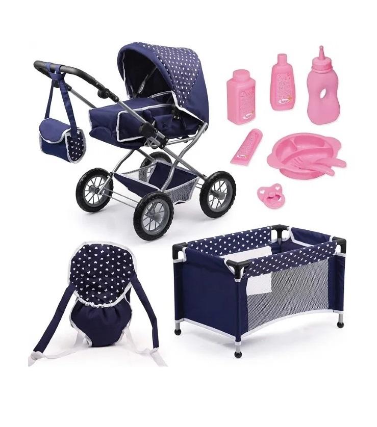 Combi Grande to nowoczesny uniwersalny wózek dla lalek ze zdejmowana gondola. Jeśli wyjmiesz gondole, możesz zmienić wózek dla lalki na wózek dziecięcy w ciągu kilku sekund. Nadaje się do lalek o długości około 38 - 46 cm. Dzięki regulowanemu uchwytowi wózek nadaje się nawet dla małych dziewczynek. Aby ułatwić transport, wózek można w łatwy sposób złożyć. Koszyk i torba na ramie są wygodne dla wszystkich rzeczy, jakie można zabrać na jednodniowa wycieczkę z mama i jej lalka. Zestaw zawiera również łóżeczko turystyczne dla lalek, butelkę dla lalek, nosidełko, smoczek, plastikowa zastawę stołową oraz butelkę dla opiekuna. Dostawa w pięknym pudelku. Wysokość uchwytu (cm): 46-75, Wymiary (cm): 77 x 43 x 75