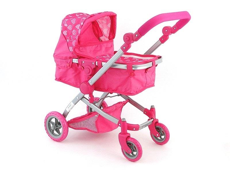 Wózek dla lalek, głęboki, obrotowe kółka, składany daszek, regulowana i przekładana rączka, z koszem, funkcja spacerówki, nosidełko, torba,