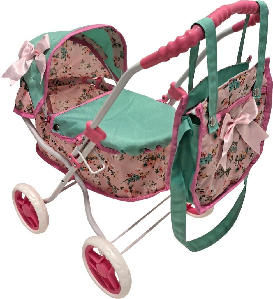 Wózek dla lalek głęboki z torbą. Łatwy w przechowywaniu gdyż prosto się składa.