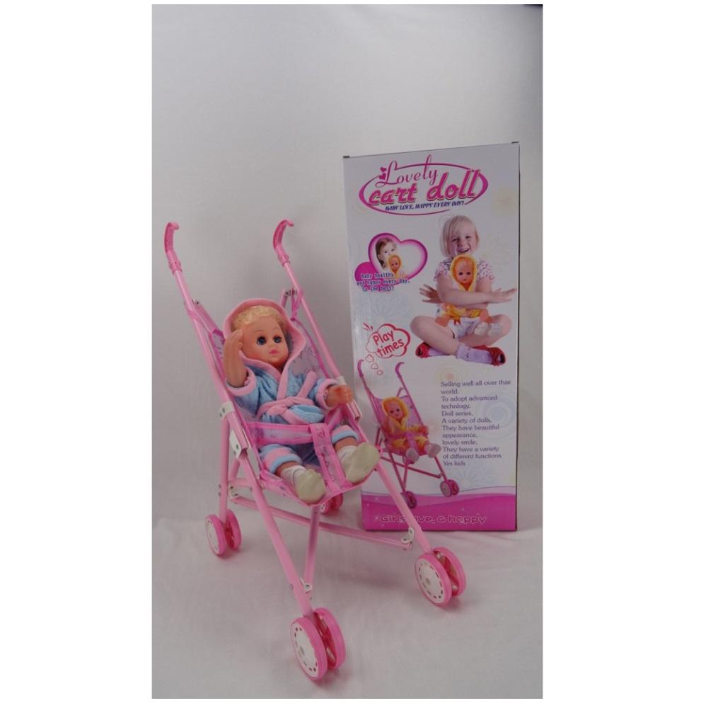 Różowy klasyczny wózeczek dla lalek + duża lalka dla dziewczynek.