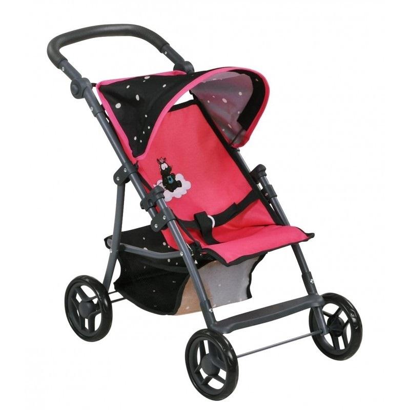 Spacerówka w kolorze czarnym z różowymi wstawkami to nowoczesny wózek z grafiką jednorożca siedzącego na chmurce. Akcesorium dodatkowego uroku doda wzór w białe groszki umieszczony na daszku oraz koszu. Spacerówka Liba 80210 od marki Knorr Toys to idealna zabawka dla dziewczynek od 3 roku życia, która sprawdzi się do przewożenia ulubionej laleczki. Z doskonale skomponowanym dodatkiem nasze pociechy będą mogły zabrać ulubioną laleczkę gdzie tylko zapragną.