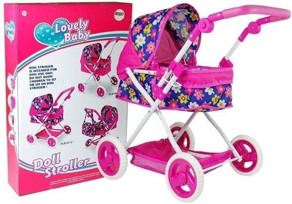 Czym wyróżnia się ten różowy wózek w kwiatki? Regulowaną i miękką rączka do prowadzenia, której wysokość można regulować, dostosowując do wzrostu dziewczynki, a także składaną budką, ułatwiającą przechowywanie. Wózek posiada duże, stabilne koła, odpowiadające ze lekkie i wygodne prowadzenie.