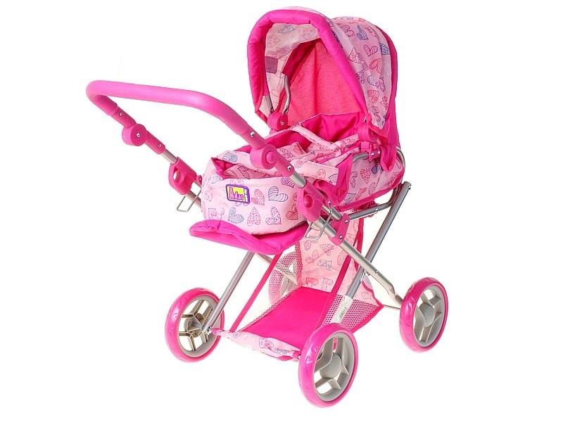 Wózek głęboki dla lalek profilowana rączka, wyjmowane nosidełko, z koszem, funkcja spacerówki.