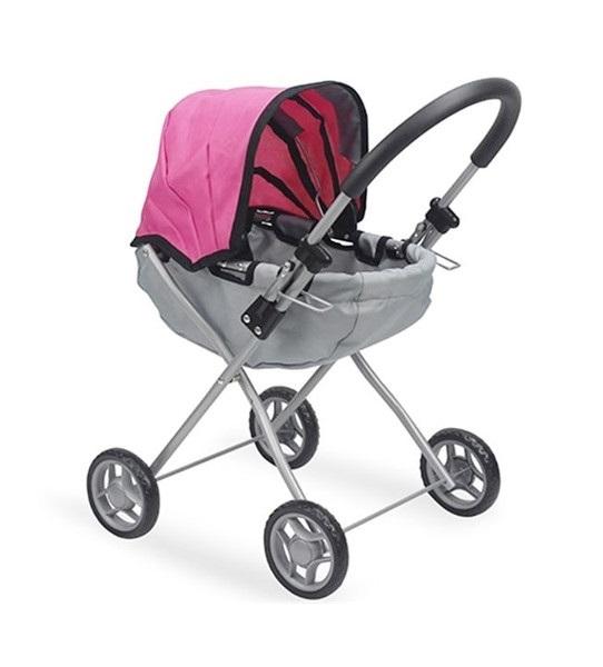Metalowy głęboki wózek do składania w różowo-szarym kolorze. Dzięki niemu dziewczynki będą mogły zabrać swoją ulubioną lalę na spacerek. Produkt zapakowany w przezroczysty worek. Wózek przeznaczony dla dzieci od 3 lat.