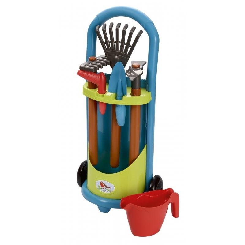 Kolorowy zestaw zabawek do ogrodu to doskonała propozycja dla maluchów na ciepłe, wiosenno-letnie dni. Zestaw zawiera wózek z dwoma kółkami i wygodnym uchwytem, w którym dziecko może przewozić narzędzia ogrodnicze. W zestawie znajdują się także grabie tradycyjne, grabie wachlarzowe, motyczka, konewka, łopatka i imitacja pistoletu zraszającego. Zabawki zostały wykonane z wysokiej jakości, bezpiecznych materiałów. Ładna, żywa kolorystyka na pewno spodoba się każdemu maluchowi, który naśladując rodziców - zostanie małym ogrodnikiem!