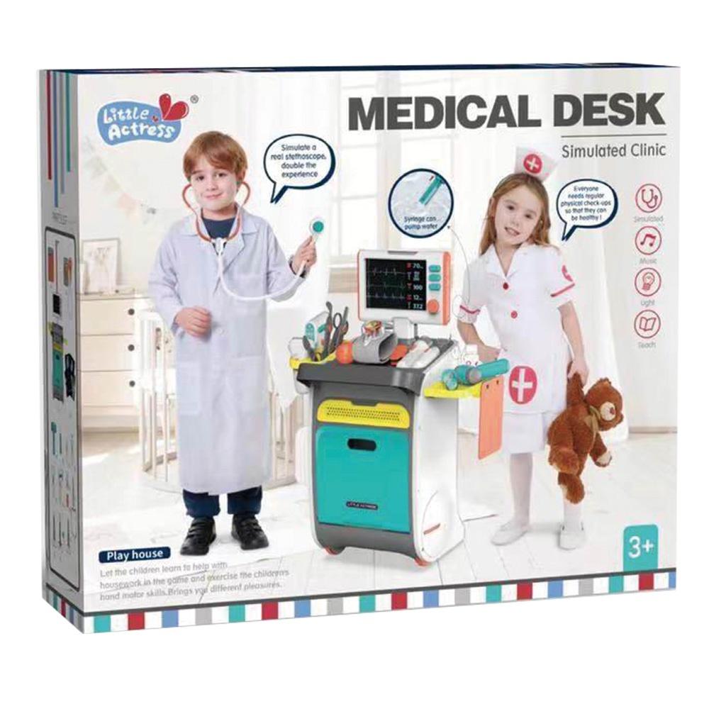 Wózek medyczny - pierwsza pomoc Wózek z EKG i miarką wzrostu Wymiary po rozłożeniu: 43 x 60 x cm Wymiary opakowania: 48 x 12 x 41 cm Wiek 3+