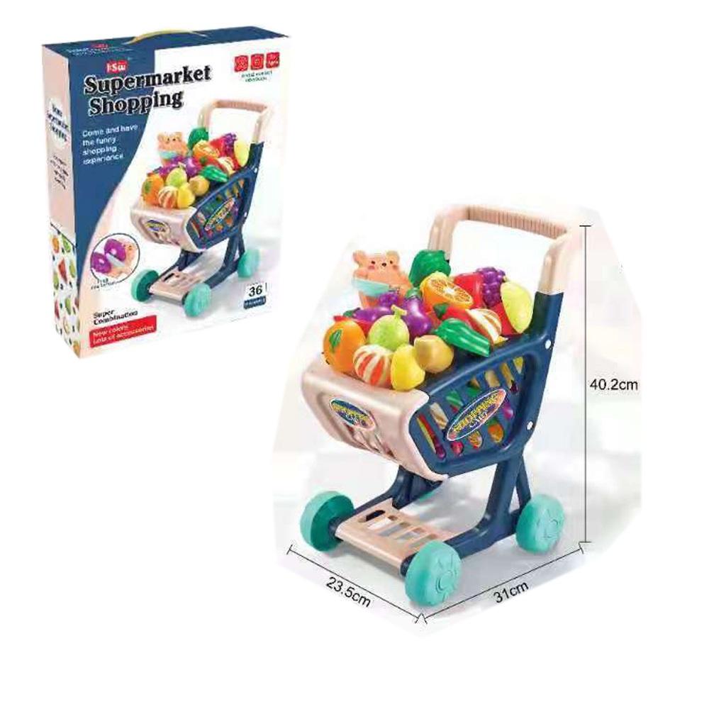 Wózek sklepowy z plastikowymi owocami, warzywami i innymi produktami spożywczymi. Zestaw posiada 36 elementów Wysokość wózka - 40,2 cm Wymiary opakowania: 33 x 10 x 43 cm