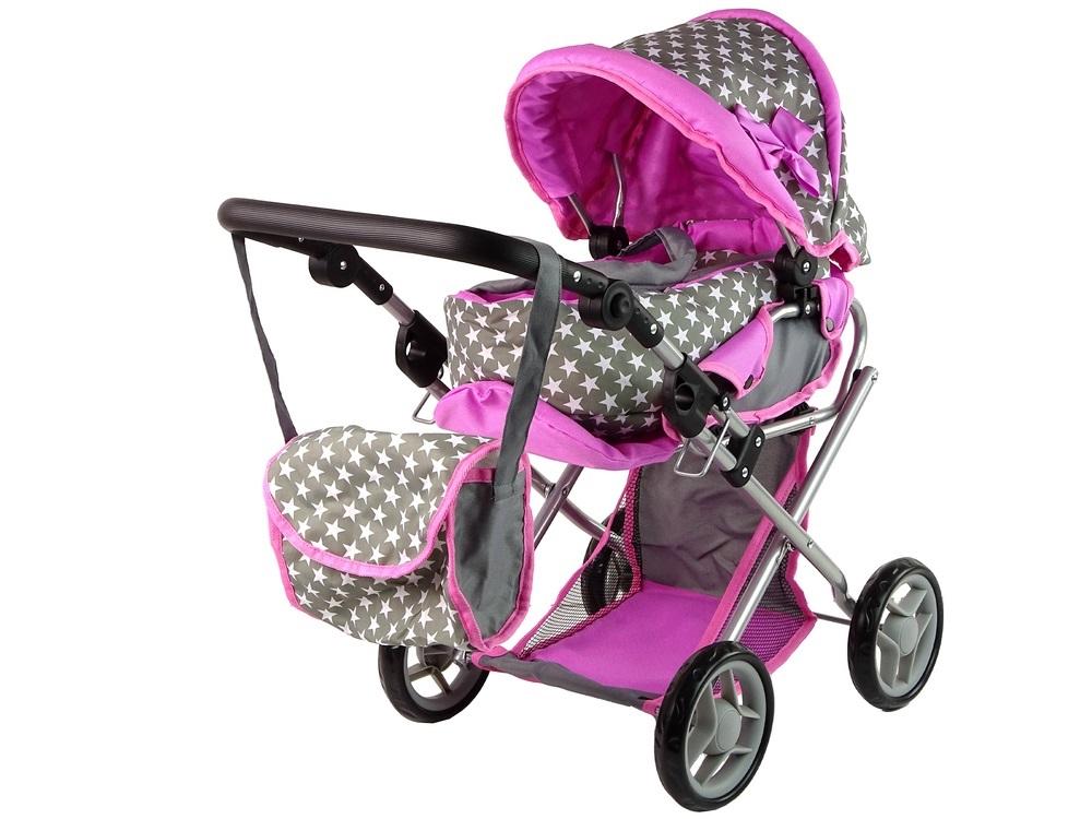 Wózek Spacerówka 2 w1 z Torbą Szaro Różowy Gwiazdki