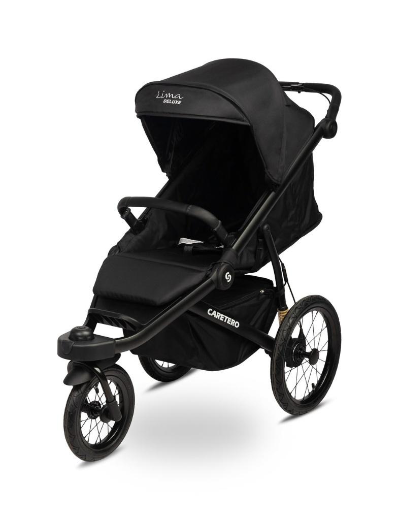 Wózek spacerowy Lima Deluxe został stworzony z myślą o rodzicach kochających aktywne spędzanie czasu. Wygoda tradycyjnego wózka spacerowego w połączeniu z wysoką funkcjonalnością trójkołowej konstrukcji tworzy idealne rozwiązanie dla rodziców będących w ciągłym ruchu. Duże, pompowane koła (tylne o średnicy 40 cm, przednie o średnicy 29 cm) sprawdzą się w jeździe po trudnym terenie. Wózek wyposażony jest w 2 hamulce: ręczny manetka na rączce wózka; nożny pomiędzy tylnymi kołami. Rozkładany daszek z wywietrznikiem zapewnia ochronę przed słońcem i wiatrem, a dołączone do zestawu folia przeciwdeszczowa i okrycie na nogi zwiększą komfort spacerów podczas trudnych warunków pogodowych. 5-punktowe pasy wraz z przednim pałąkiem zabezpieczają dziecko przed wypadnięciem z wózka. Lima Deluxe została również wyposażona w zapinany kosz mieszczący wszystkie potrzebne akcesoria codziennego użytku. Kąt pochylenia oparcia można płynnie dostosować do potrzeb dziecka, a łatwy w obsłudze mechanizm składania czyni wózek wygodnym w transporcie.