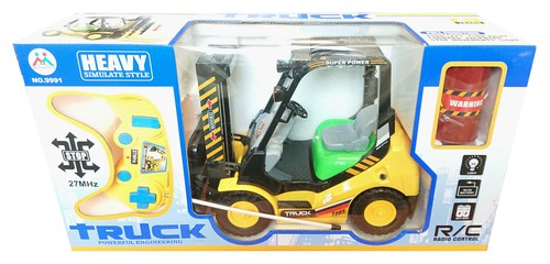 Wózek widłowy posiada podnoszone (góra/dół) ramię z widłami na wysokość aż 28 cm, za pomocą prostego pilota w obsłudze zapewniając wspaniałą zabawę na długie godziny.