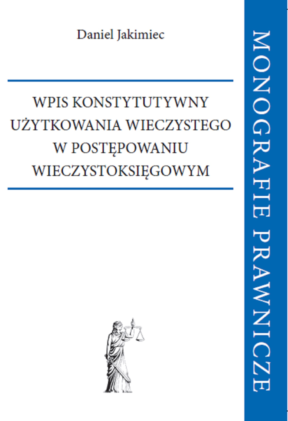 Prowadzenie ksiąg wieczystych ustawodawca powierzył sadom rejonowym, a dokładnie funkcjonującym w nich wydziałom ksiąg wieczystych. Treść wpisu wieczystoksięgowego jest ujawniana w toku prowadzonego postępowania wieczystoksięgowego. Wpisy te spełniają istotna role – służą bezpieczeństwu obrotu prawnego. W istocie są środkiem do realizacji tego celu poprzez ujawnianie stanu faktycznego i prawnego nieruchomości. Wśród wpisów wieczystoksięgowych (ze względu na ich skutek) można wyróżnić wpisy deklaratoryjne i konstytutywne. Właśnie temu ostatniemu, to jest wpisowi konstytutywnemu, a precyzyjnie rzecz ujmując, wpisowi prawa użytkowania wieczystego, poświęcono niniejsze opracowanie. Autor, dr Daniel Jakimiec, absolwent studiów magisterskich na Wydziale Prawa i Administracji Uniwersytetu Śląskiego w Katowicach oraz studiów doktoranckich na Wydziale Prawa i Administracji Uniwersytetu Gdańskiego. W trakcie studiów doktoranckich wyróżniony stypendium dla najlepszych doktorantów. Dr Daniel Jakimiec jest referendarzem sadowym zatrudnionym w wydziale cywilnym, a wcześniej także w wydziale ksiąg wieczystych oraz w sekcji windykacji należności sadowych i wykonywania orzeczeń w ramach wydziału karnego. W przeszłości asystent sędziego w wydziale rodzinnym i dla nieletnich oraz w wydziale karnym i w wydziale pracy sadu rejonowego. Był wolontariuszem świadczącym pomoc prawna podopiecznym Ośrodka Pomocy Społecznej w Chojnicach. Autor szeregu artykułów naukowych oraz monografii.