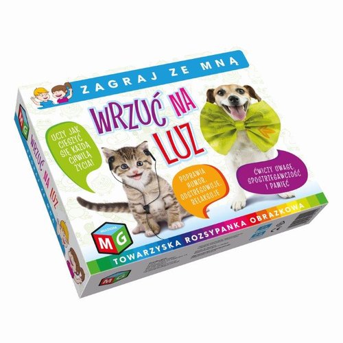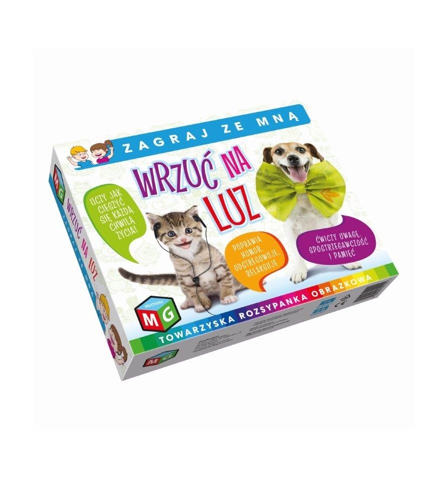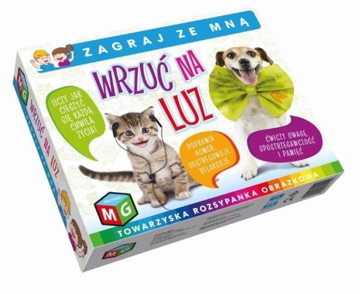 Wrzuć na luz! Jest to propozycja towarzyskiej zabawy polegającej na odnalezieniu pasujących do siebie fragmentów rozweselających zdjęć, zawierających zbiór afirmujących życie zaleceń i rad. Gra doskonale relaksuje, zachęca do zachowania dystansu do siebie, uczy jak cieszyć się każdą chwilą życia i dostarcza wielu wskazówek jak żyć w sposób wyjątkowy. Ta gra towarzyska jest szczególnie polecana jako antidotum na kiepski nastrój, zły dzień, przygnębienie. Zapewnia poprawę humoru, odstresowuje, relaksuje i podpowiada co robić, by było nam z innymi dobrze i innym z nami.
