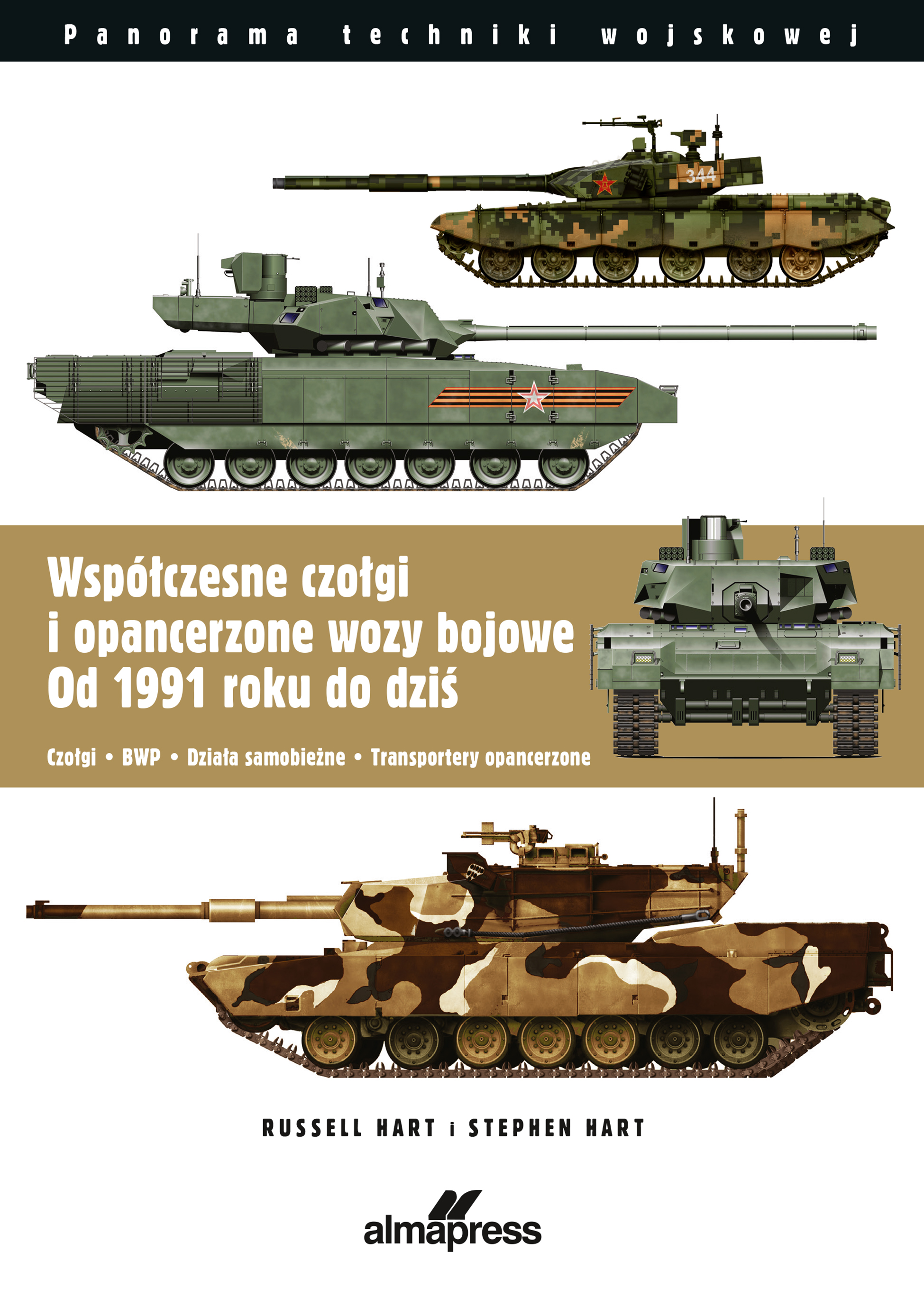 W książce przedstawiono rozwój czołgów, transporterów opancerzonych, bojowych wozów piechoty i samochodów pancernych od końca zimnej wojny do dziś. Zapoznać się można z opisem bardzo wielu różnych współczesnych pojazdów opancerzonych, od mało znanych czołgów, takich jak północnokoreański Chonma-Ho i irański Zulfiqar, po rozmaite wersje MBT Leopard 2 i T-72, znajdujące się obecnie w wyposażeniu sił zbrojnych armii świata. Książka zawiera 250 barwnych ilustracji i zdjęć, z autentycznymi oznakowaniami i wiernie odtworzonym malowaniem maskującym. Dr Russel Hart jest profesorem historii, dyrektorem programu studiów z zakresu dyplomacji i wojskowości na Hawaii Pacific University w Honolulu na Hawajach. Jest autorem książek Clash of Arms i Guderian oraz współautorem 6 innych, m.in. Technical Guide: Modern Tanks and AFVs. Dr Stephen Hart jest starszym wykładowcą na Wydziale Studiów o Wojnie w Royal Military Academy w Sandhurst w Wielkiej Brytanii. Jest autorem wielu książek z zakresu historii wojskowości, m.in. Military Atlas of Tank Warfare, German Weapons of World War II i Technical Guide: Russian Tanks of World War II.