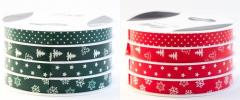 Wstążki z motywem świątecznym. 4 wstążki na szpuli, Szerokość 10mm, długość 6 metrów. Mix kolorów, kolor wysyłany losowo.