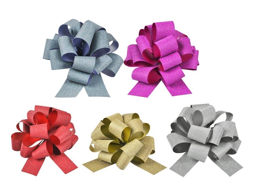 Wstążka ściągana do ozdabiania prezentów. OPAKOWANIE ZAWIERA: - 50 szt. wstążek ściąganych brokatowych Pakowane po 50 sztuk w woreczku z zawieszką. Wymiar: 180mm x 130mm x 60mm (szer. x wys. x gł.)