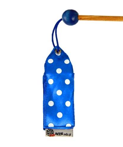 Materiał połączony jest z drewnianą tyczką kolorowym sznureczkiem, a tyczka zakończona jest po obu stronach drewnianymi kulkami, dzięki czemu wstążka idealnie pasuje do małych rączek i jest wygodna w użytkowaniu.