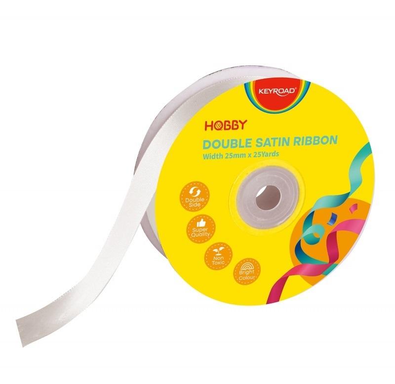 Wstążka podwójna satynowa biała 25mmx22,86m