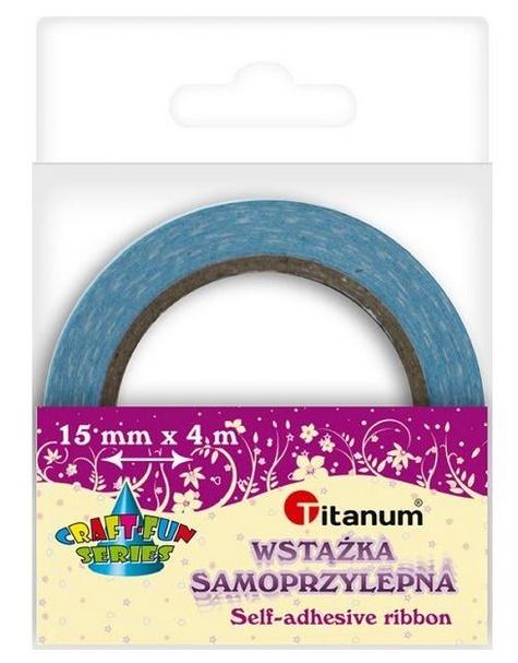 Wstążka samoprzylepna tekstylna 15mm x 4m niebieska w białe groszki