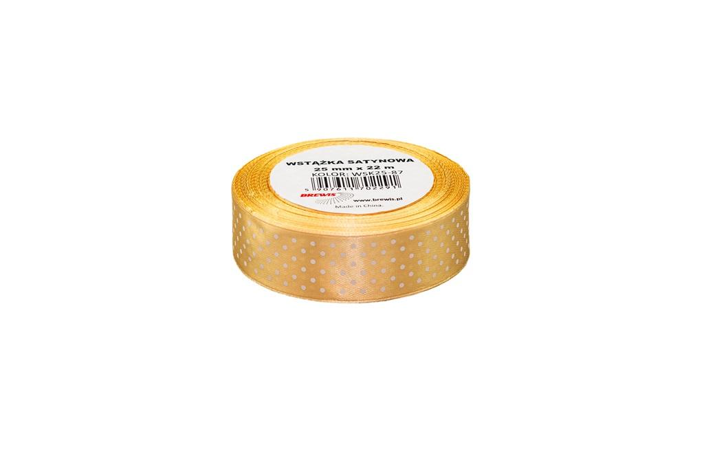Wstążka satynowa w kropki rozmiar: 25 mm x 22 m kolor: złoty