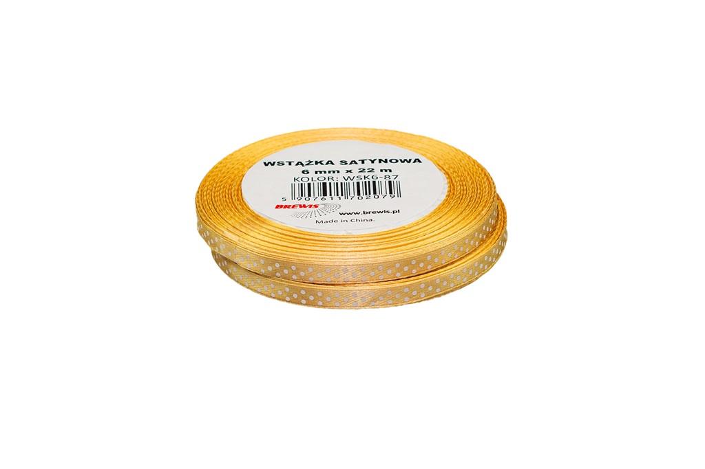 Wstążka satynowa w kropki rozmiar: 6 mm x 22 m kolor: złoty
