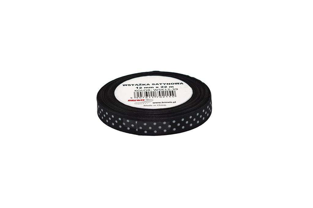 Wstążka satynowa w kropki czarna 12mmx22m
