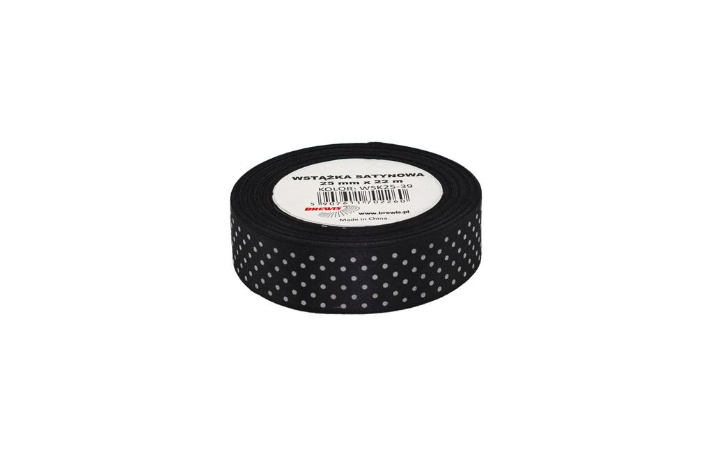 Wstążka satynowa w kropki czarna 25mmx22m