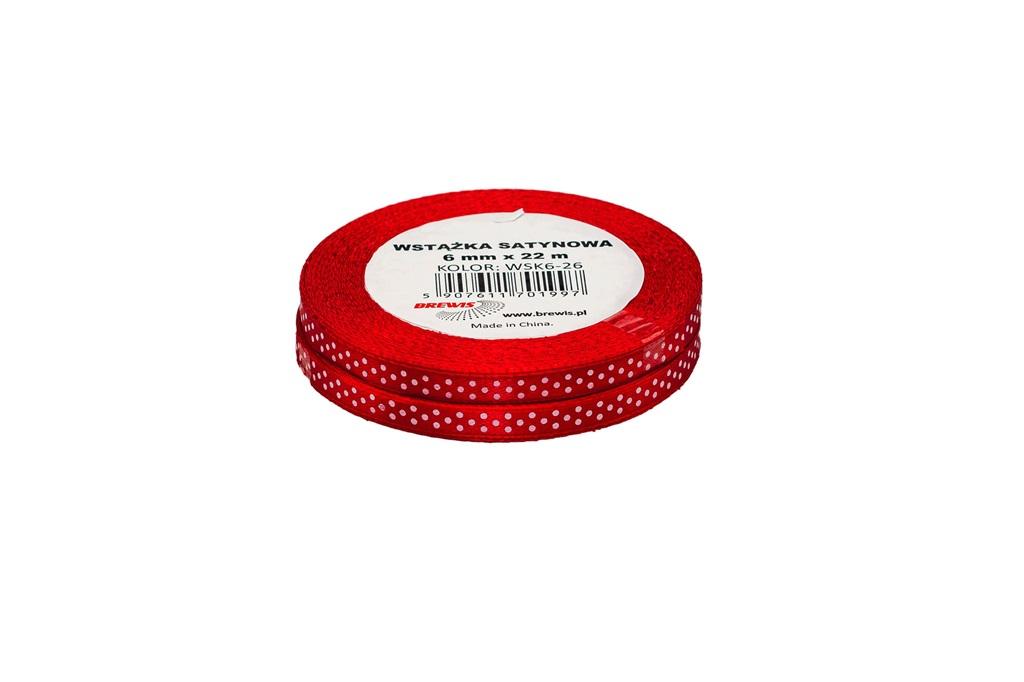 Wstążka satynowa w kropki rozmiar: 6 mm x 22 m kolor: czerwony
