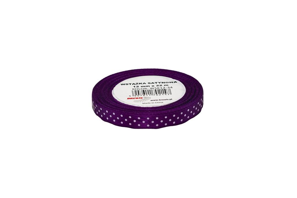 Wstążka satynowa w kropki śliwkowa 12mmx22m