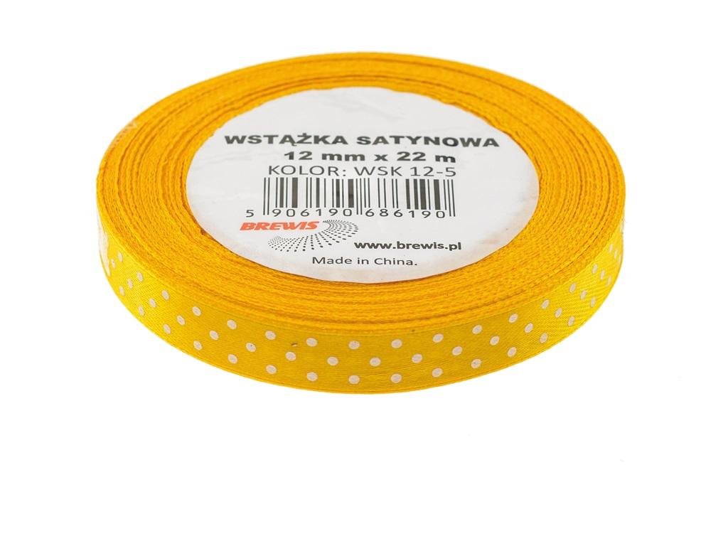 Wstążka satynowa w kropki rozmiar: 12 mm x 22 m kolor: żółty