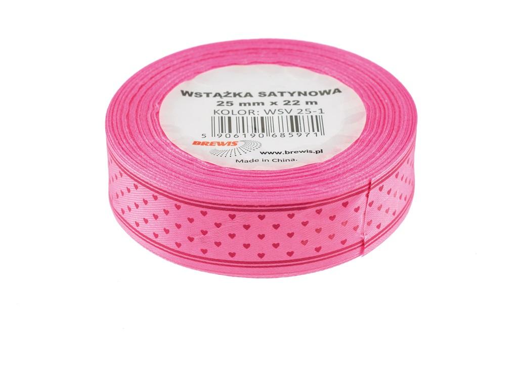 Wstążka satynowa w serca różowa 25mmx22m