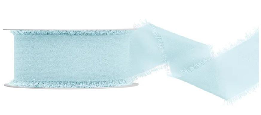 Wstążka szyfonowa w kolorze jasnego błękitu, szerokość ok. 40 mm, długość ok. 10 m.