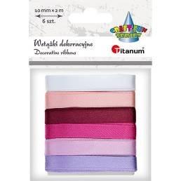 Wstążki satynowe 10 mm/2 m, 6 kolorów: wrzosowy, różowy, fuksjowy, bordowy, łososiowy, biały.