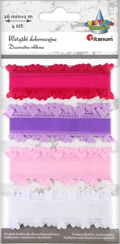 Wstążki z organzy 15mm, z falbanką z sercami 26mm, 4 kolory x1m