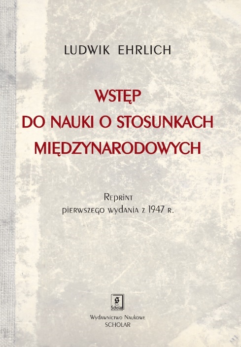 Reprint wydania Księgarni Stefana Kamińskiego w Krakowie z 1947 roku Gdyby w stulecie naszej Niepodległości szukać kogoś, kto w podobnej perspektywie czasowej inicjował polskie badania stosunków międzynarodowych, a potem mógłby być uznany za „ojca” naszej nauki o stosunkach międzynarodowych, niewątpliwie byłby to Ludwik Ehrlich. (...) Wznawiany przez nas Wstęp do nauki stosunków międzynarodowych, po raz pierwszy od 1947 roku, jest pierwszą pracą pod takim właśnie tytułem w polskim piśmiennictwie. I napisał ją autor najbardziej spośród wszystkich polskich badaczy ówcześnie do tego predysponowany. Pomimo upływu ponad siedemdziesięciu lat od jej napisania oraz innej niż współcześnie narracji w tej dziedzinie, tekst jest klarowny. Niniejsze wydanie skierowane jest do badaczy i koneserów przedmiotu, więc lektura będzie wyłącznie przyjemnością i ogromnym pożytkiem. Filozofowie od średniowiecza przypominają nam, że „widzimy więcej, stojąc na ramionach olbrzymów”. Oto mamy okazję. z Przedmowy prof. dr. hab. Romana Kuźniara