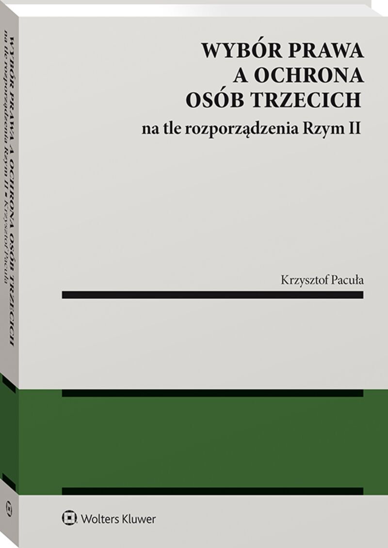 W publikacji przedstawiono analizę instrumentu ochrony osób trzecich, ustanowionego w art. 14 ust. 1 zd. 2 rozporządzenia Rzym II dotyczącego prawa właściwego dla zobowiązań pozaumownych. Autor wyjaśnił, dlaczego wybór prawa dokonywany przez uczestników obrotu w formie czynności prawnej może wywoływać skutki wobec osób trzecich, w jakich sytuacjach występuje możliwość zastosowania wspomnianego przepisu i jakie są skutki naruszenia praw osób trzecich w rozumieniu tego uregulowania. Wyczerpująco omówiono m.in.: zakres zastosowania rozporządzenia Rzym II (np. w kontekście łańcucha umów); sposób dokonania wyboru prawa właściwego dla zobowiązań pozaumownych, zwłaszcza w kontekście międzynarodowego obrotu handlowego z udziałem przedsiębiorców i w sytuacjach, w których pojawia się kwestia zaangażowania odpowiedzialności ubezpieczyciela udzielającego ochrony ubezpieczeniowej; skutki wyboru prawa dla podmiotów, które tego wyboru dokonują, oraz dla innych osób, na których sytuację wybór ten może oddziaływać; sposób rozwiązywania problemów wiążących się z dokonaniem wyboru prawa w celu pokrzywdzenia innych osób. Książka zainteresuje przedstawicieli zawodów prawniczych - adwokatów, radców prawnych i sędziów, a także osoby zajmujące się obsługą prawną przedsiębiorców uczestniczących w międzynarodowym obrocie handlowym oraz podmioty działające w sektorze ubezpieczeniowym. "() książka wyczerpująco udziela odpowiedzi na praktyczne pytania dotyczące wyboru prawa dla zobowiązań pozaumownych na gruncie rozporządzenia Rzym II oraz mechanizmu ochrony osób trzecich przewidzianego w tym rozporządzeniu. () stanowi spójny i wyczerpujący wywód o charakterze prekursorskim nie tylko w skali polskiej, lecz także europejskiej. Ma niepodważalną doniosłość teoretyczną i praktyczną". Z recenzji dra hab. Mariusza Frasa, prof. UŚ