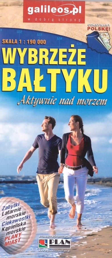 Krajoznawcza mapa całego wybrzeża z zaznaczonymi najważniejszymi atrakcjami turystycznymi. Dodatkowo na mapie znajdują się plany: Gdyni, Sopotu, Gdańska, Jastrzębiej Góry, Łeby, Ustki, Kołobrzegu, Rewala, Niechorza, Międzyzdrojów i Świnoujścia.