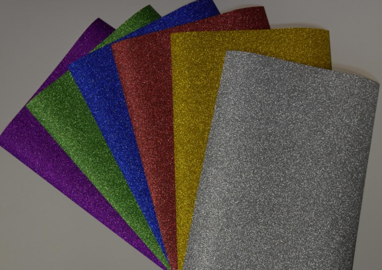 Wycinanka A4, 6 różnokolorowych kartek z brokatem.